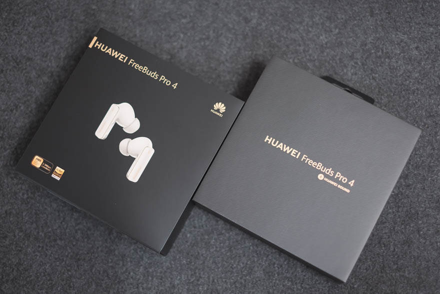 前作FreeBuds Pro 3までは白基調のパッケージだったのに、今作から黒で仕上げたシックで高級感のある路線に変更されている。