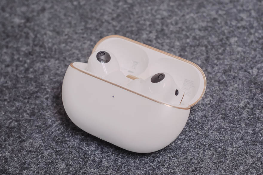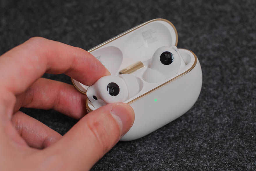 またケースの開口部が大きく開くため、イヤホンを取り出す時に指とケースが干渉しないのがいい。ケースから取り出しにくいイヤホンはストレスになるんだけど、HUAWEIは使い勝手を考えている。