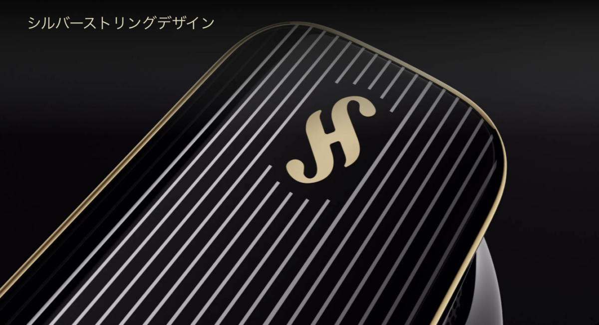 イヤホンとケースには金のラインが追加された上に、イヤホン側面も謎の縦シマ模様が追加された……。